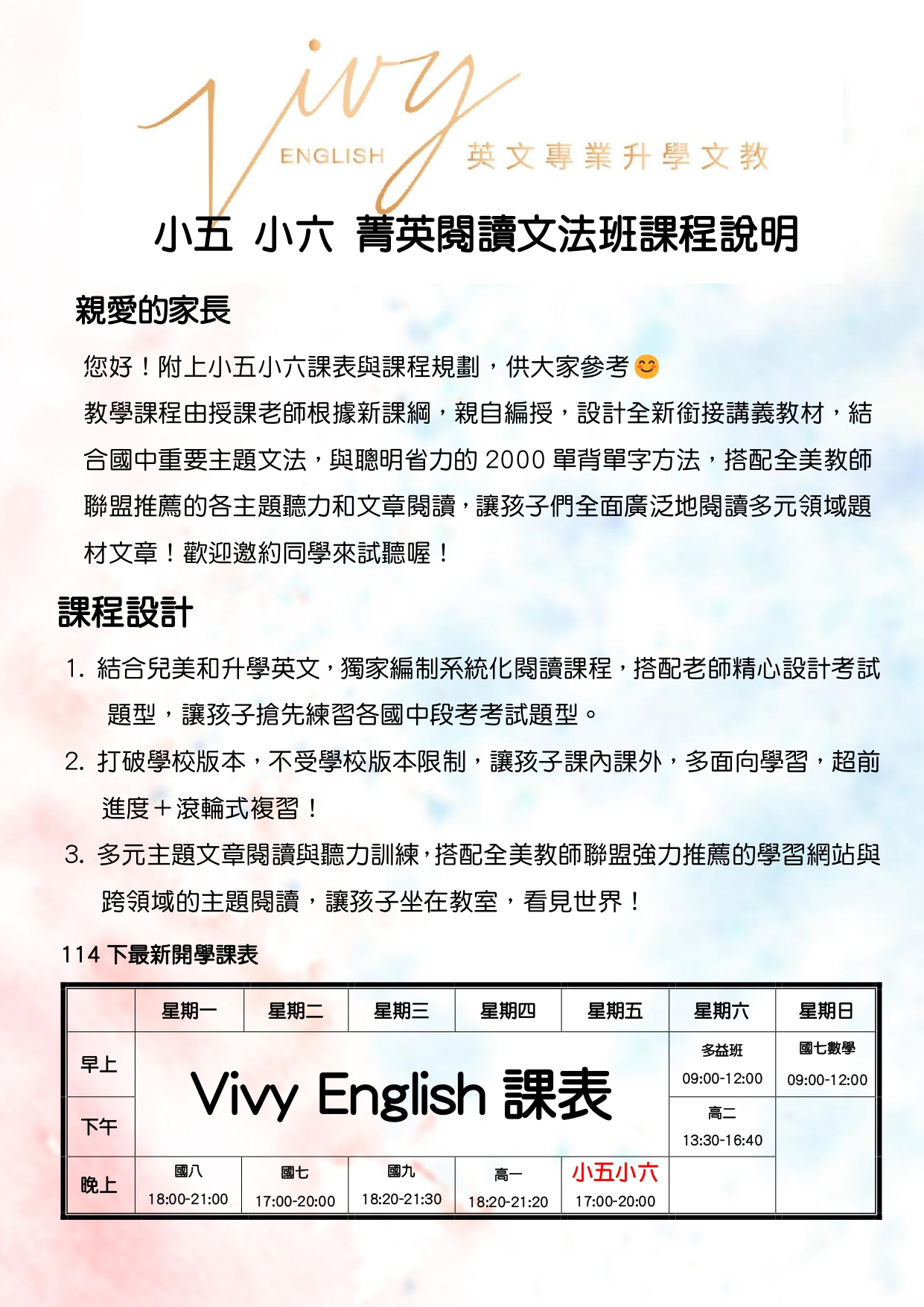 • 114(下)小五小六英文菁英班